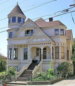 (Julius Krafft, 1889)This Queen Anne Victorian, one of the largest and finest in Berkeley, was among the early houses built in the Antisell Villa Lots tract northwest of the University campus. The original owner was a San Francisco shipping magnate who lived here until his death in 1918.