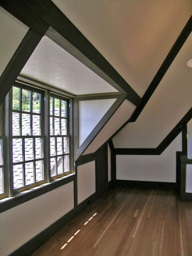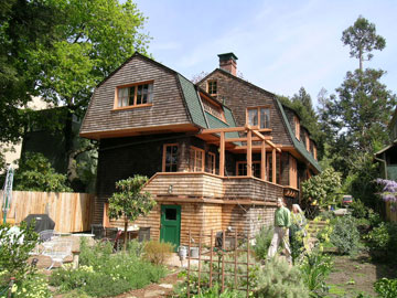 The new owners, veterans of a Philadelphia restoration, wasted no time in breathing new life into the house. They repaired the entire north wall, which was rotted, and rebuilt the back porch stairs, which had been removed after the Loma Prieta earthquake, using an old photograph as a model. The sleeping porch under the rear gambrel roof had a chronic leak that was finally addressed with new windows correctly installed.
