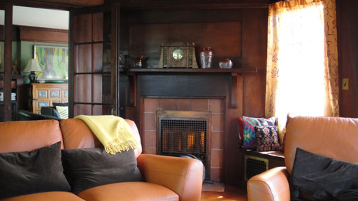 Rooms that has been modified over the years were returned to their original configuration. Electric outlets and switches were replaced with antique push-button brass plates from 1905. The fireplaces were rebuilt with antique fire bricks and capped with tops and vents of the original type. All the woodwork was oiled and stained where necessary. The floors, which had been sealed with polyurethane prior to the sale, were stripped and finished with tung oil.