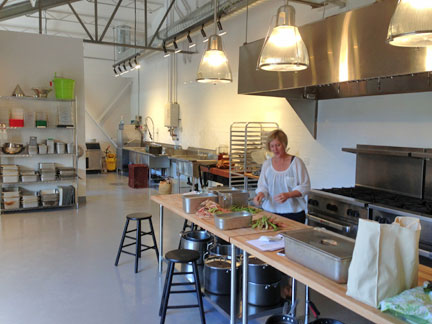 One of the kitchens (courtesy of Jonah Hendrickson)The ground floor is currently occupied by fifteen food manufacturing enterprises who supply the local markets. Each workspace includes a sink and oven, items that add to the expenses of a fledgling business if it has to provide them itself. The walls throughout are gleaming white, underscoring the sense of cleanliness and sanitation.