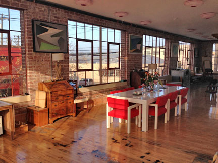A studio space on the second floor (courtesy of Jonah Hendrickson)Offices and artist studios are located on the second floor. Although only one red brick wall of the original building remains, the owners have incorporated some of the rails from the track of the railroad spur line that served West Berkeley when it was an industrial site.