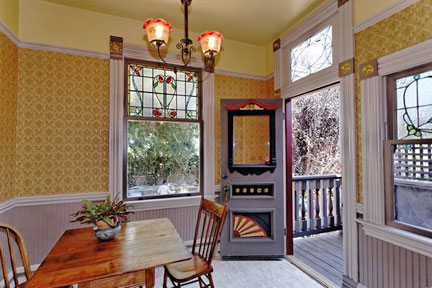 Victorian decorative elements lost in the fire were replaced with bespoke period reproductions or with genuine period fixtures and elements obtained from salvage suppliers. Both exterior and interior were painted in the exuberant colors found in the Victorian palette.