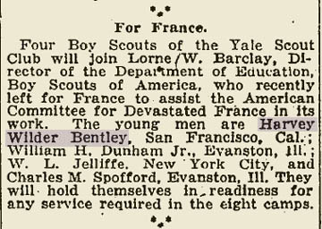 Perhaps the most interesting figure in the Bentley family was Harvey Wilder Bentley, the the eldest of Charles Harveys children. Wilder (after his mothers maiden name) graduated from San Franciscos Lowell High School in 1918. He attended Yale University and the University of Michigan, then spent several years in Europe providing relief work with French war orphans and later traveling.