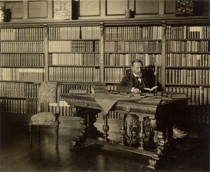 Charles Halls baronial library at 2425 Hillside Avenue (Hall family collection, BAHA archives)