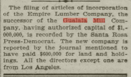 Gualala Mill Co. listed among the subscribers to the Alaska Trade Committee (San Francisco Call, 23 January 1898)