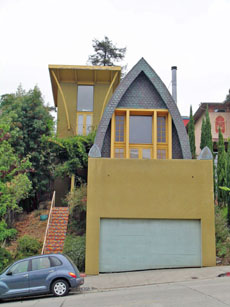 Photo: Daniella Thompson, 2006This playful house replaced a 1920s Spanish Colonial Revival residence that had burned in the 1991 hills fire. In a neighborhood chock-a-block with insurance-fuelled Hatters Castles and mini McMansions, the 1,400 square-foot building is both a refreshing exercise in modesty of scale and a rare statement of creativity.