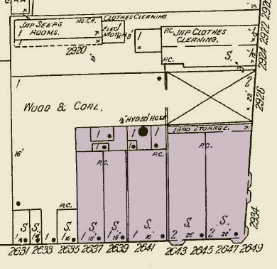 Still, we have a pretty good idea where the design originated, and we need only look as far as San Francisco. There, in 1905, Albert Pissisarchitect of the Presidents Mansion on the U.C. campusdesigned a very similar building (left) for the California Casket Company. Lillie Koerber, who lived at 1185 Valencia Street, must have passed it regularly. Perhaps she was the one who suggested that its design be followed. Pissis, who died in 1914, was in no position to protest.