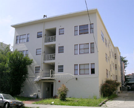 The Picardo Arms, 2491 Ellsworth St., lost much of its 1928 elegance when all its original windows were recently replaced with vinyl. (photo: Daniella Thompson, 2007)