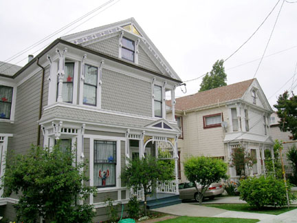 The two McCleave rental houses (l to r), 1510 and 1506 Oxford Street (photo: Daniella Thompson)In 1891, the McCleaves began construction of two rental houses on the remaining vacant lots directly behind their residence. These houses faced Oxford Street, a few doors north of Captain Boudrows house. They were constructed in the Queen Anne style that was the fashion of the day by Berkeley contractor and builder George Embury.