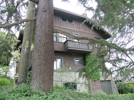 Thomas & Kitty McCleaves residence, 2844 Garber Street (photo: Daniella Thompson)Following the death of William McCleave in 1904, his widow began a peripatetic life, rotating among her childrens far-flung military posts. In 1908, Dr. McCleave, a noted milk sanitarian, built himself a shingled Arts & Crafts house at the top of Garber Street, in an enclave known as Monte Rosa Terrace. His house was one of three designed by his good friend, George Taylor Plowman (18691932), who had assisted Daniel H. Burnham with construction for the 1893 Worlds Fair in Chicago before coming to Berkeley to serve as the Universitys Superintendent of Architecture under John Galen Howard. Plowmans own house stood three doors down, at 2830 Garber Street.