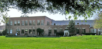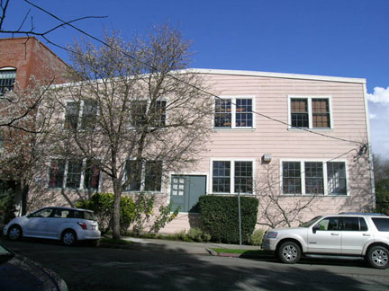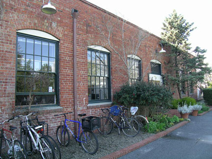 The one-story wing of the American Photo Player Co. complex faces Strawberry Creek Park. (photo: Daniella Thompson, 2010)