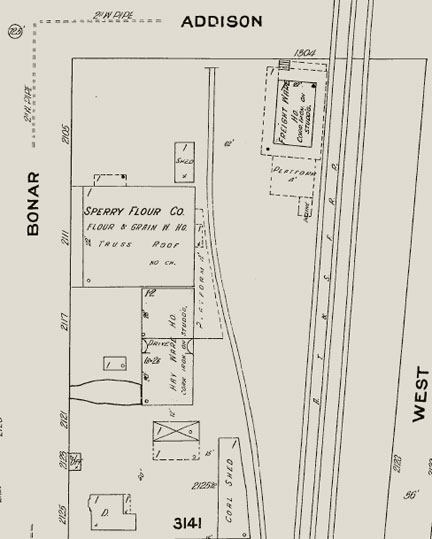 Sperry Flour Co. wasnt the first occupant of this block, known in the assessors books as Block A of the Bryant Tract. As early as 1893, there were at least two residences at the southwestern end of this block. One of them, at 2141 Bonar Street, was owned and most likely built as a speculative venture by A.H. Broad, Berkeleys popular contractor, public official, and amateur painter. The second, at 2125 Bonar, was the home of John T. Lamb, an Iowan whose working life included stints as shepherd, hotel keeper in a mining town, mine engineer, and gold amalgamator. On Bonar Street, he was listed first as laborer, then as attorney. Lamb and his wife, Annie, decamped for Madera County in 1899 but continued to own their house and three lots on Bonar Street.