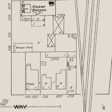 At the southern end of the block were the Fisher Brothers Vienna Bakery, their flats, and the Sonntag property. (Sanborn fire insurance map, 1911)A year later, a baker by the name of Christopher C. Fisher purchased five lots on the northeast corner of Bonar and Allston Way. He built a bakery, soon to be known as Fishers Vienna Bakery, and a pair of flats at 12511253 Allston Way, where he and his younger brother, Fred, settled down.