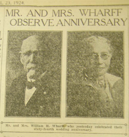 Each Wharff wedding anniversary witnessed a gathering of the tribes from near and far. The couples 64th anniversary, commemorated in 1924, even drew in Hiram W. Ricker, owner of the celebrated Poland Spring resort in Maine.