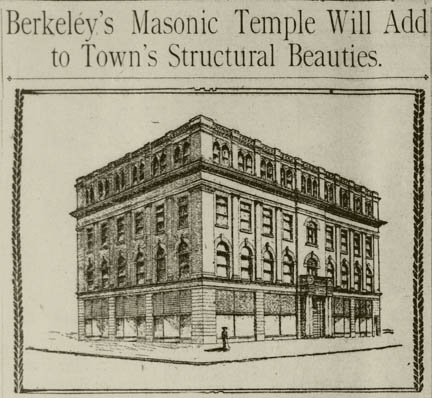 The Berkeley Masonic Temple, 2105 Bancroft Way at Shattuck Avenue, was completed in April 1907. (photo: Daniella Thompson, 2008)19 February 2008 & 12 April 2017