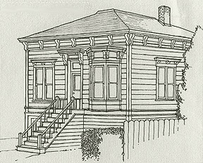 (from Rehab Right, City of Oakland Planning Dept.)The widow of George W. Amos, Mary was a native of New York, like her husband. They were married in San Francisco in 1871. In the 1880 United States Census, Mary was listed as the head of household with two daughters, four- and five-years old. The parcel on which Mrs. Amos built hercottage was Lot #28 of Block 114 of the Berkeley Land and Town Improvement Association, subdivided in 1873. In 1878, only a handful of structures had been built south of University Avenue. In fact, the building of any structure in the vicinity was an event worth recording in the Berkeley Advocate at that time, which is why a published record of the cottage exists.