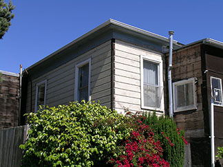 (photo: Daniella Thompson, 2004)It is unknown who lived in the Amos cottage between 1883 and 1886. In the McKenney Directory published in October 1887, Mr. James Balcom, a teamster working for the Standard Soap Company, was listed as the owner-resident. An early West Berkeley settler, Mr. Balcom had been living on Second Street between Allston and Bancroft Way since 1878. He remained in the Amos cottage until 1895. In 1890, a relative by the name of Daniel Balkam, former miner and now a teamster with the West Berkeley Lumber Company, was also living at the same address, where he resided until 1915.