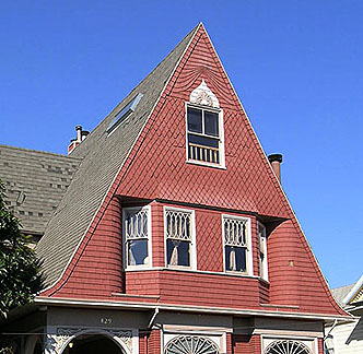 829 Delaware St. (photo: Daniella Thompson, 2005)Part 1: A Bay Area phenomenon? Part 2: A plethora of designs Part 3: Groupings and variations Part 4: The unique and the lookalike Part 5: Steep roofs by name architects Part 6: Siblings and neighbors