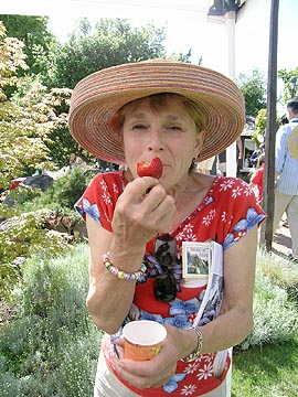 4:06 pm: Sarah Wikander4:06 Francine Mohn savors one of the last strawberries.