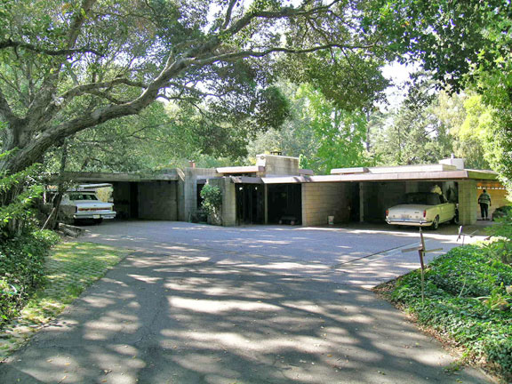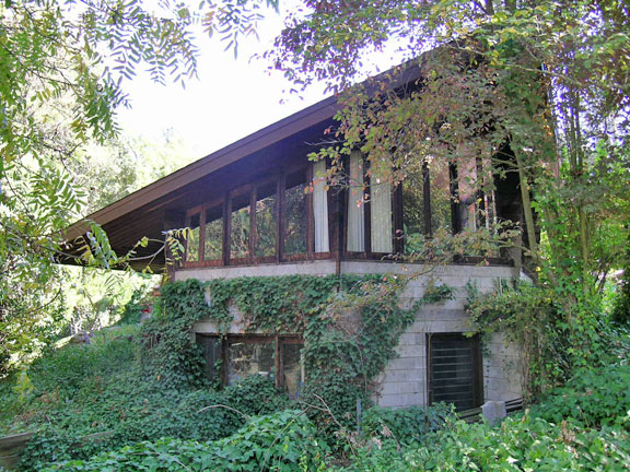 Designed by Frank Lloyd Wright in 1948, it is one of his twelve Usonian houses in California. The Buehler House wraps around a lushly landscaped pool fed by a waterfall.