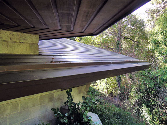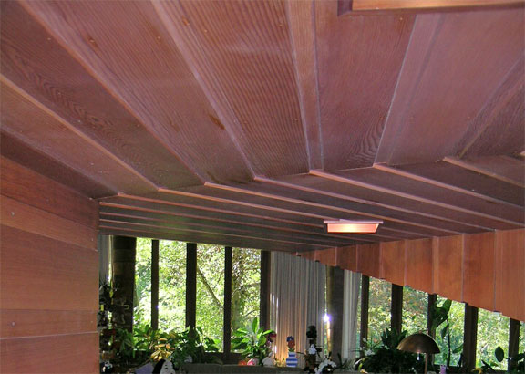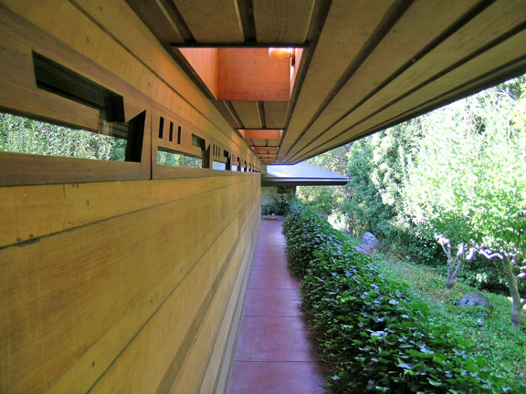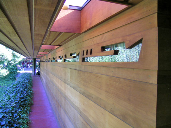 Frank Lloyd Wright’s signature Usonian cutouts provide light with privacy.