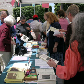 The book table: Susan Cerny, John McBride, and Carrie Olson. (photo: Allen Stross, 2005)