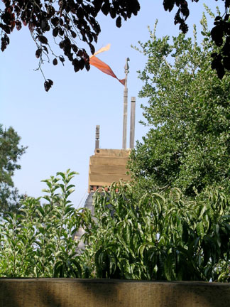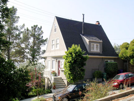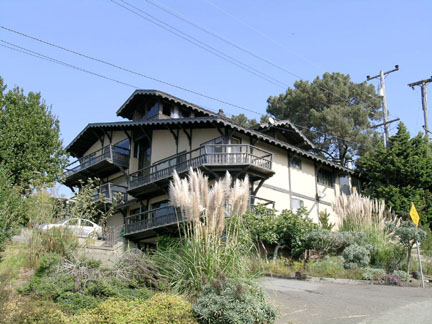 A flag flutters atop Lumiere, architect Walter Thomas Brooks home, the first plastic shingled house in America, according to the plaque on the fence (see Dave Weinsteins illustrated article on Brooks in the SF Chronicle).