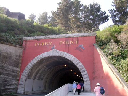 The Ferry Point tunnel is one of the oldest in California. Built in 1899, it connected the Santa Fe railroad to the now abandoned pier that serviced the San Francisco ferries. The mural was painted by John Wehrle in 1996.
