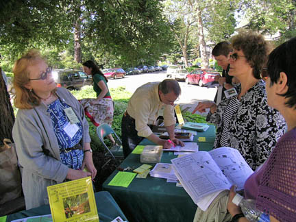 4:11 pm: At the ticket booth: Lesley Emmington converses with Gaye Fawcett (photo: Daniella Thompson, 2006)