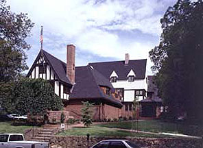 The house is of the old English style, slightly reminiscent of Ann Hathaways cottage. It contains eight bedrooms, kitchen, dining room, reception room, library and a large chapter hall, which can be used for dancing.While the fraternity was in residence, the building underwent several expansions and alterations. In 1909, a three-story dormitory wing designed by Bakewell & Brown was added on the east end. In 1921, the same architects were responsible for a new dining room block at the northwest corner. A one-story flat-roofed block was added in the 1930s east of the dining room addition. At the same time, some of the wood shingle exteriors were replaced with clinker-brick veneer on the ground floor and stucco with wide boards simulating half-timber construction on the upper floors.