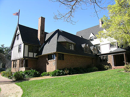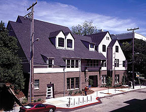 Hearst Avenue fa�ade clad with clinker brick & half-timbered stucco (photo: ARG)