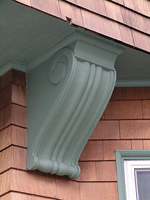 Judging by the surviving ground-floor windows and by the gable windows at 1810 Prince St., one can safely assume that the triple window in the front gable of 2818 San Pablo Ave. used to have diamond insets in the upper panes. The topmost gable window may have been made up of small diamond panes, as is the case next door at 2820 San Pablo. The new horizontally sliding window at the top is an unhappy choice. Building an extra liveable floor within the attic obviously dictated operable windows, but a sash window or else a single casement would have been more in keeping with the original design. The southern dormer suffered the most egregious disfiguration, losing its two triangular gables, as well as the upturned curvature of its roof ridges.