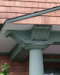 Grouped in pairs and threesomes, High-Peaked Colonial Revival houses make for an impressive sight. Especially when their roof ridges curve upward at the tips, they resemble a fleet of majestic ships sailing forth. A particularly attractive type designed by A.W. Smith appears in several locations in Berkeley. Theres a trio on Martin Luther King Jr. Way (see Part 1 for photos of 3028 MLK Way), a pair at 2818 and 2120 San Pablo Avenue, and two singles at 1810 and 1831 Prince Street. This design comes in two major variants: the entrance porch is either supported by three columns and extends across the entire length of the front fa�ade or it is restricted to the right-hand side of the fa�ade, with a shallow triangular gable roof supported by two columns. Since 2818 San Pablo Ave. was built by A.W. Smith in 1901, theres good reason to believe that the other six were also built by him around the same time.