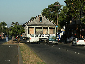 If you didnt get out at the crack of dawn on Sunday, 24 August 2003, to watch the historic Kenney Cottage make its way five blocks down University Avenue, take this virtual tour.